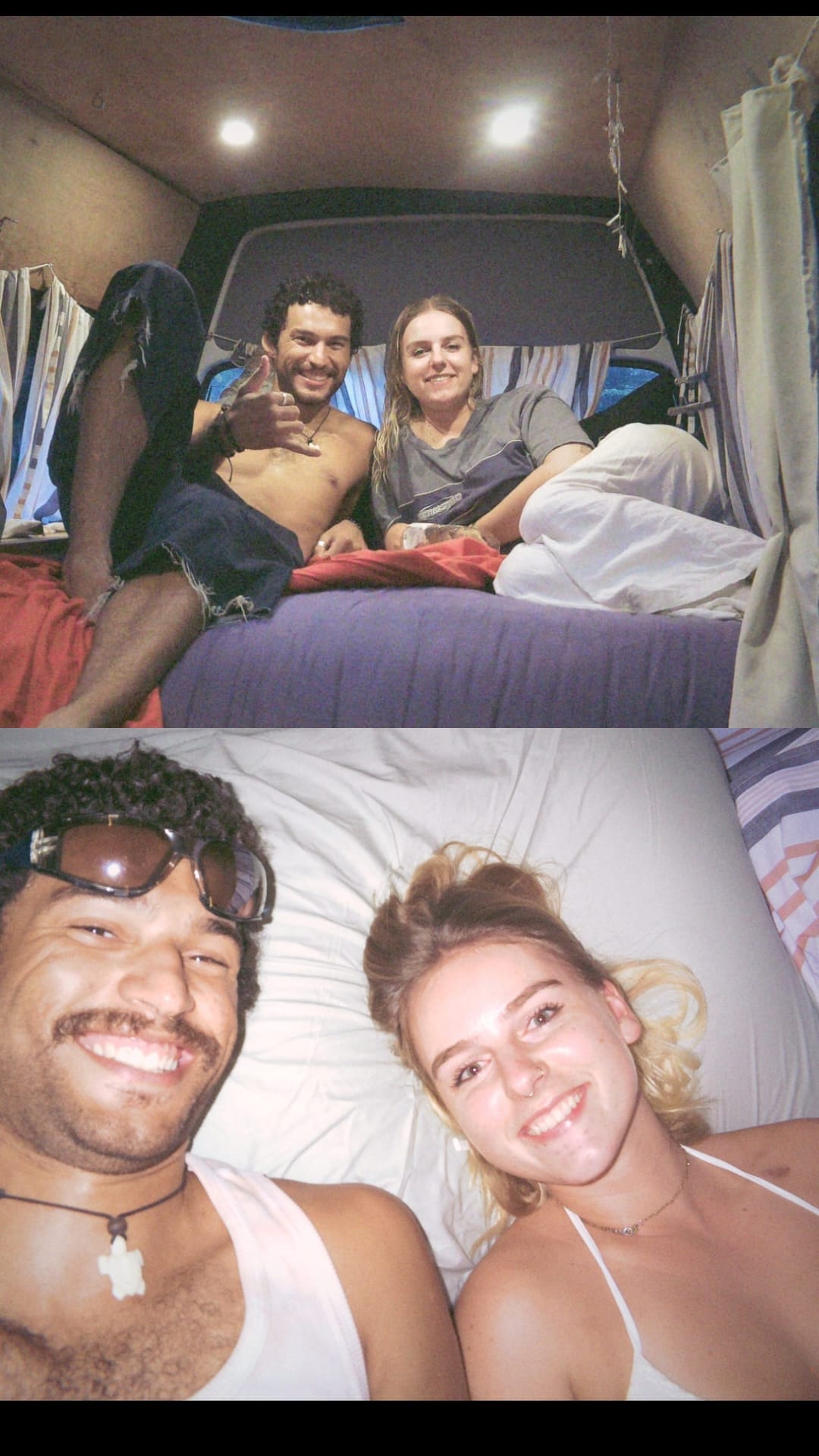 Holy shit, helemaal vergeten te vermelden! Funny side note: we hadden lekkage. En nog wel boven het bed. We kwamen er al snel achter dat het ergens rondom het dakraam vandaan kwam, dus we hebben het bed omhoog gegooid en er uit voorzorg een emmer onder gezet. Uiteindelijk hebben we een tarp over het dak gegooid for the time being, want we konden het niet “nu nu nu” fixen.